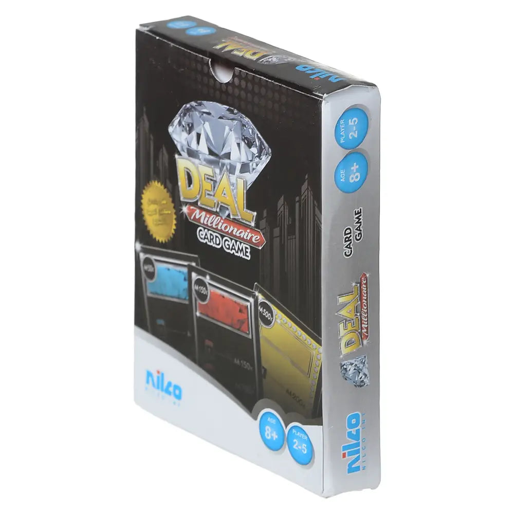لعبة بطاقات نيلكو ديل مليونير هي لعبة بطاقات عائلية شيقة، مصممة للأعمار من 8 سنوات فما فوق، حيث يجمع اللاعبون الممتلكات ويضعون استراتيجيات للتفوق على خصومهم. استمتع بلحظات ممتعة مع الأصدقاء والعائلة، وطوّر مهارات التفكير المنطقي!