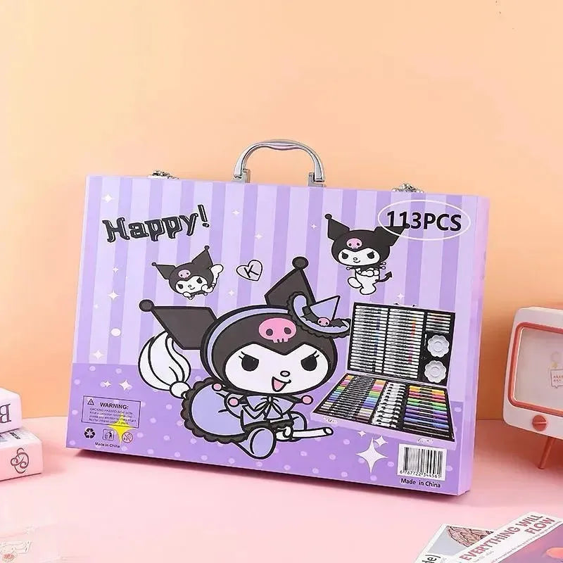 شنطة أدوات تلوين للأطفال – 113 قطعة بتصميم "Kuromi" البنفسجي