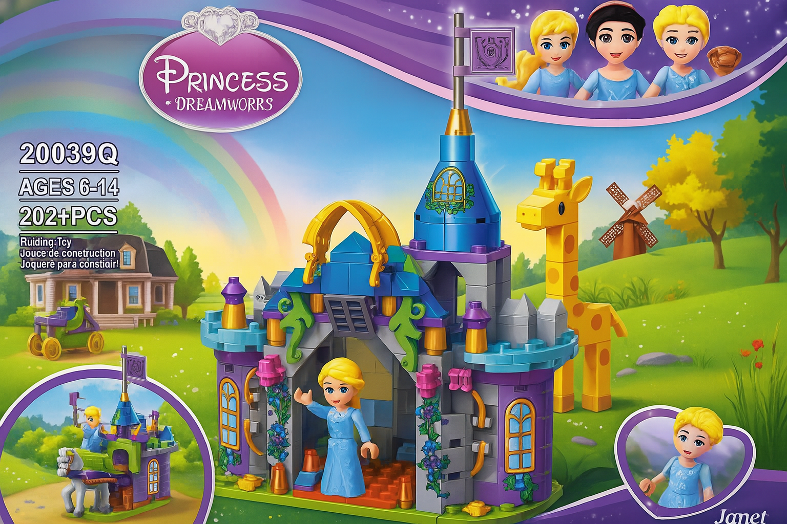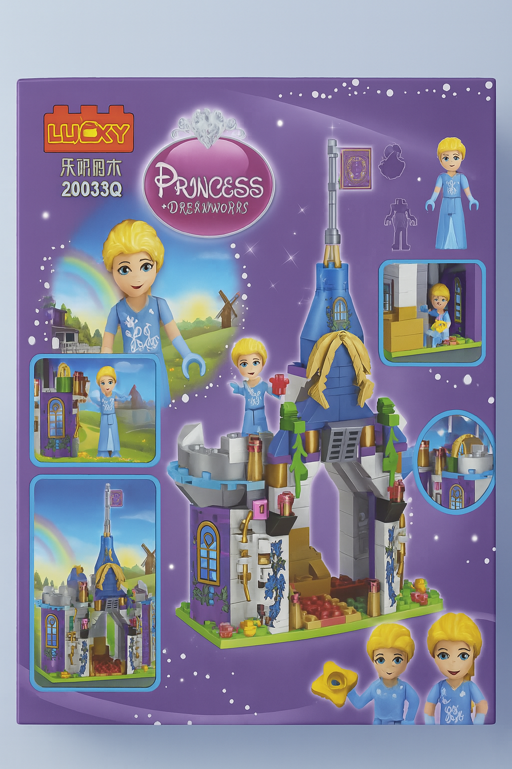 تتضمن المجموعة نموذجاً مفصلاً لبناء قلعه للاميرات بتصميم واقعي -مع شخصيات صغيرة