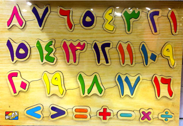 لوحة خشبية تعليمية تحتوي على أرقام عربية من 1 إلى 20، بالإضافة إلى الرموز الرياضية الأساسية (الجمع، الطرح، الضرب، القسمة، أكبر من، أصغر من، يساوي). مصممة بألوان زاهية تساعد على جذب انتباه الطفل وتحفّزه على التعلم.