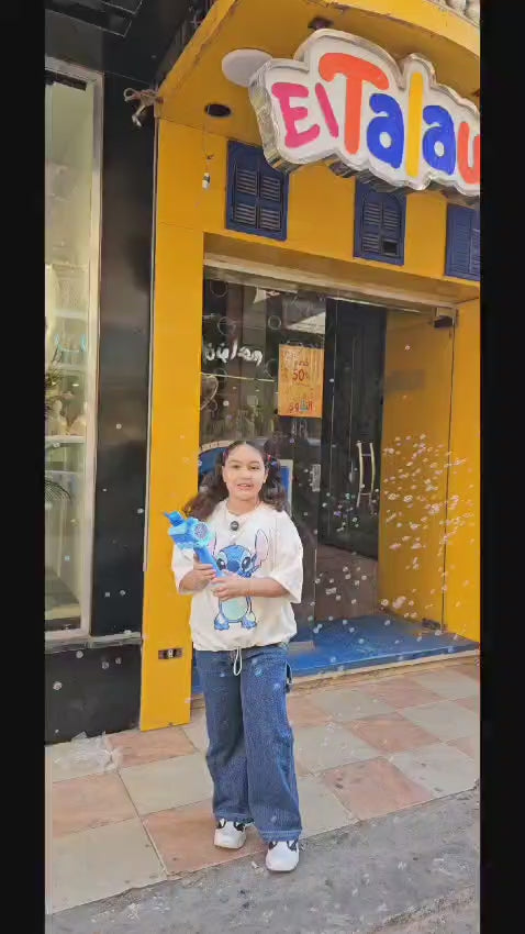 Stitch Automatic Bubble Machine with Batteries, 360° Rotation, for Endless Fun