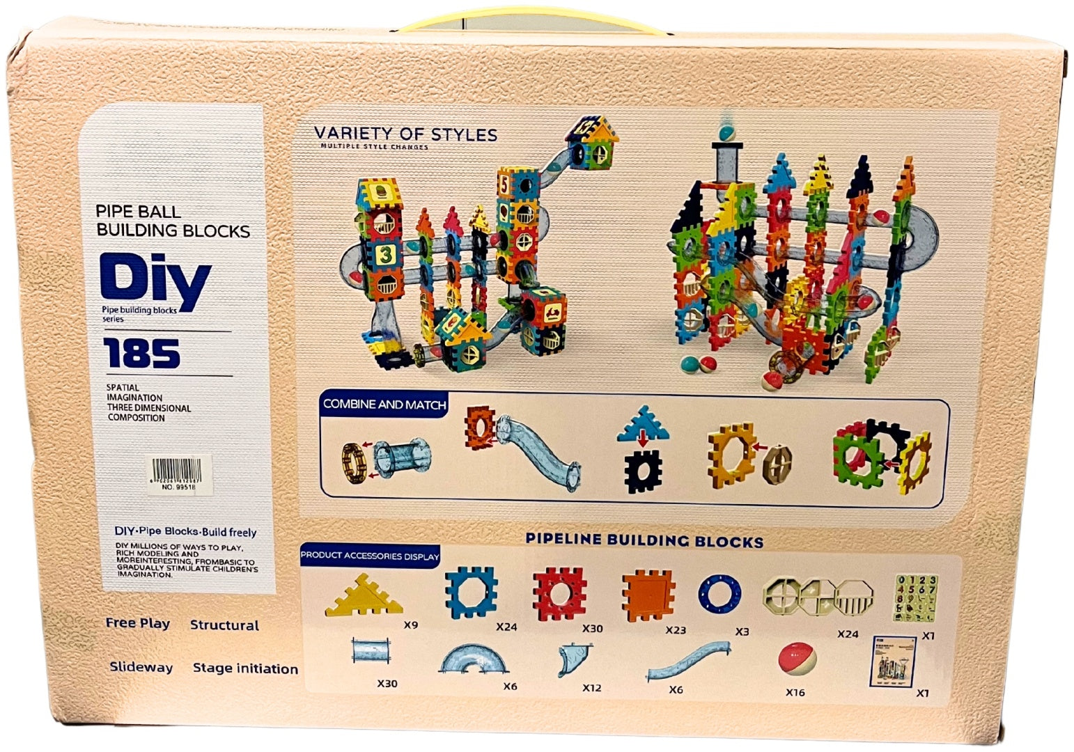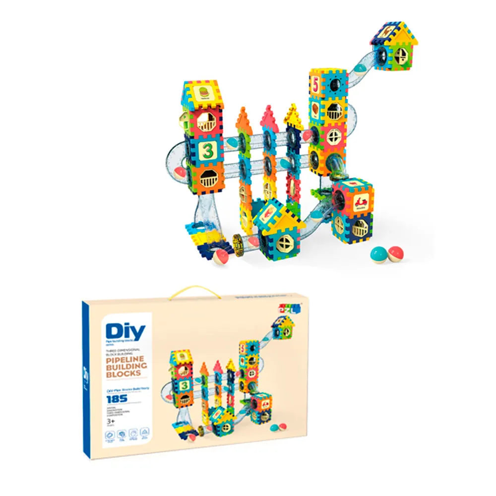 استمتع بوقت من الإبداع والتعلم مع مجموعة مكعبات الأنابيب التعليمية المكونة من 185 قطعة ملونة! تساعد هذه اللعبة الطفل على بناء مسارات ثلاثية الأبعاد باستخدام المكعبات المتداخلة والأنابيب الشفافة، مما يعزز مهارات التخيل والتفكير المكاني.